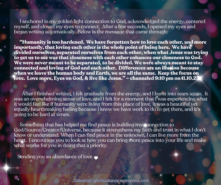 My goal is to show up authentically in the sharing process, to be honest about what I’m going through as well as to share the downloads, messages and guidance that I intuitively receive. All of my content is prepared and shared holding the intention for the highest good for humanity. I was a practicing mental health therapist for years, and am now a spiritually based guidance counselor. I offer a unique variety of services to assist and provide support to humans on their Earthly journeys, all on a pay as you can/sliding fee scale. A lot is happening on the planet right now. Humanity is evolving and thus we as individuals are evolving as well. It is so important to seek supportive connection during these times of intense expansion and contraction. I hope my content can be a bright spot along your journey.