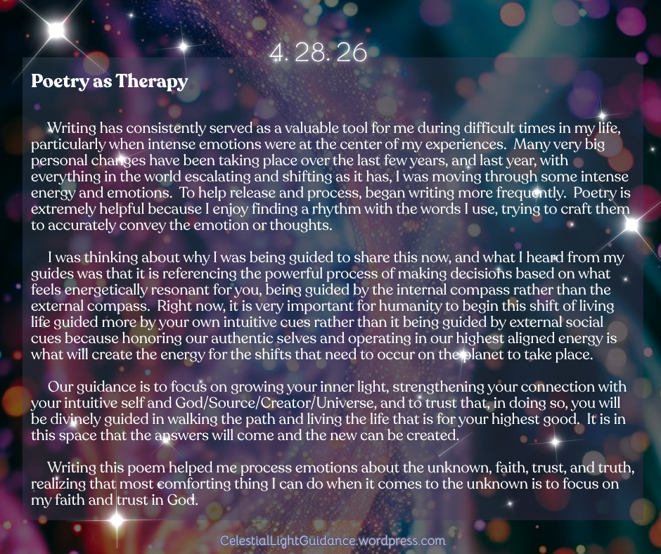 My goal is to show up authentically in the sharing process, to be honest about what I’m going through as well as to share the downloads, messages and guidance that I intuitively receive. All of my content is prepared and shared holding the intention for the highest good for humanity. I was a practicing mental health therapist for years, and am now a spiritually based guidance counselor. I offer a unique variety of services to assist and provide support to humans on their Earthly journeys, all on a pay as you can/sliding fee scale. A lot is happening on the planet right now. Humanity is evolving and thus we as individuals are evolving as well. It is so important to seek supportive connection during these times of intense expansion and contraction. I hope my content can be a bright spot along your journey.
